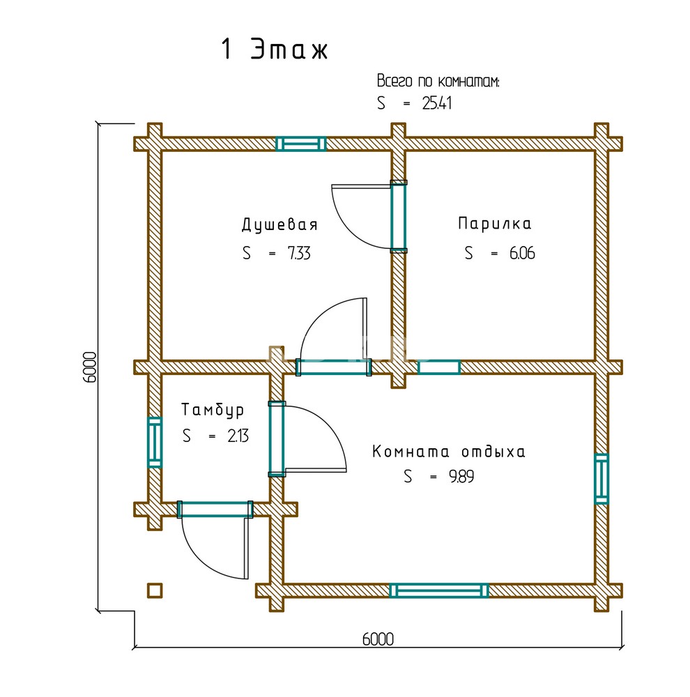 Площадь 1 этажа: 25 м